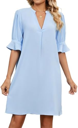 Shirts Dress for Women V Neck Short Sleeves Casual Flowy Summer Beach Vacation Shifts