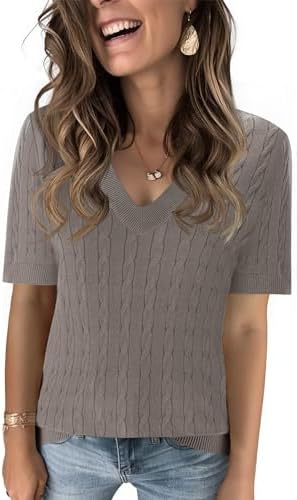 Kistore Womens Summer Short Sleeve Sweaters Tops V Neck Cable Knit Lightweight Sweater Shirts Blouses 2025