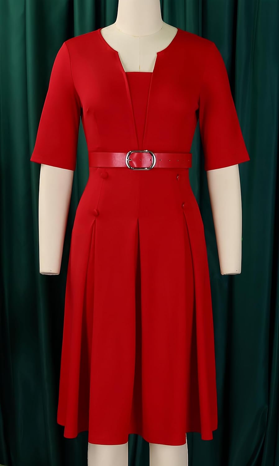 Church Dress for Women 3/4 Sleeve Skirt with Belted Midi Dresses Fit for Office Work and Cocktail Party Outfits