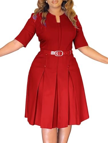 Church Dress for Women 3/4 Sleeve Skirt with Belted Midi Dresses Fit for Office Work and Cocktail Party Outfits
