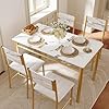 IRONCK Dining Table Set for 4, Wood Kitchen Table with Upholstered Chairs for Kitchen & Dining Room, Compact Dining Set for Small Spaces, White & Gold