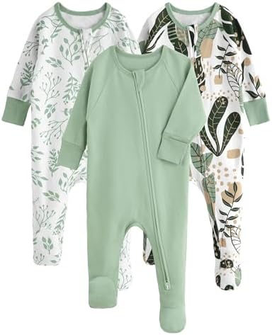 Yoofoss Baby Pajamas 100% Cotton Baby Sleepers for Newborn 0-3 3-6 6-9 Months Boys Girl Clothes 3pcs Footed PJs