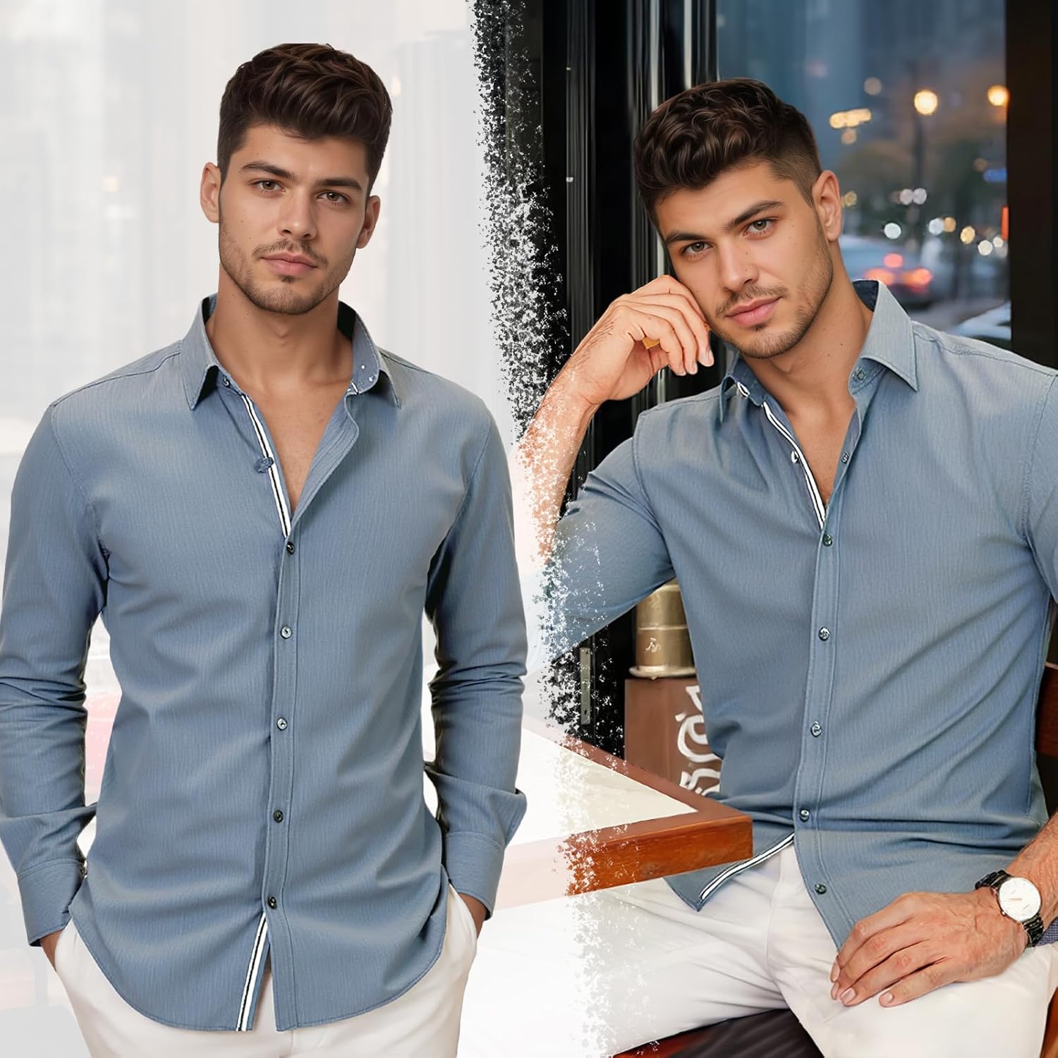 Men's Stretch Denim Dress Shirt Long Sleeve Casual Button Down Everyday Shirts Fall Winter Wedding Shirts