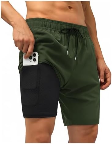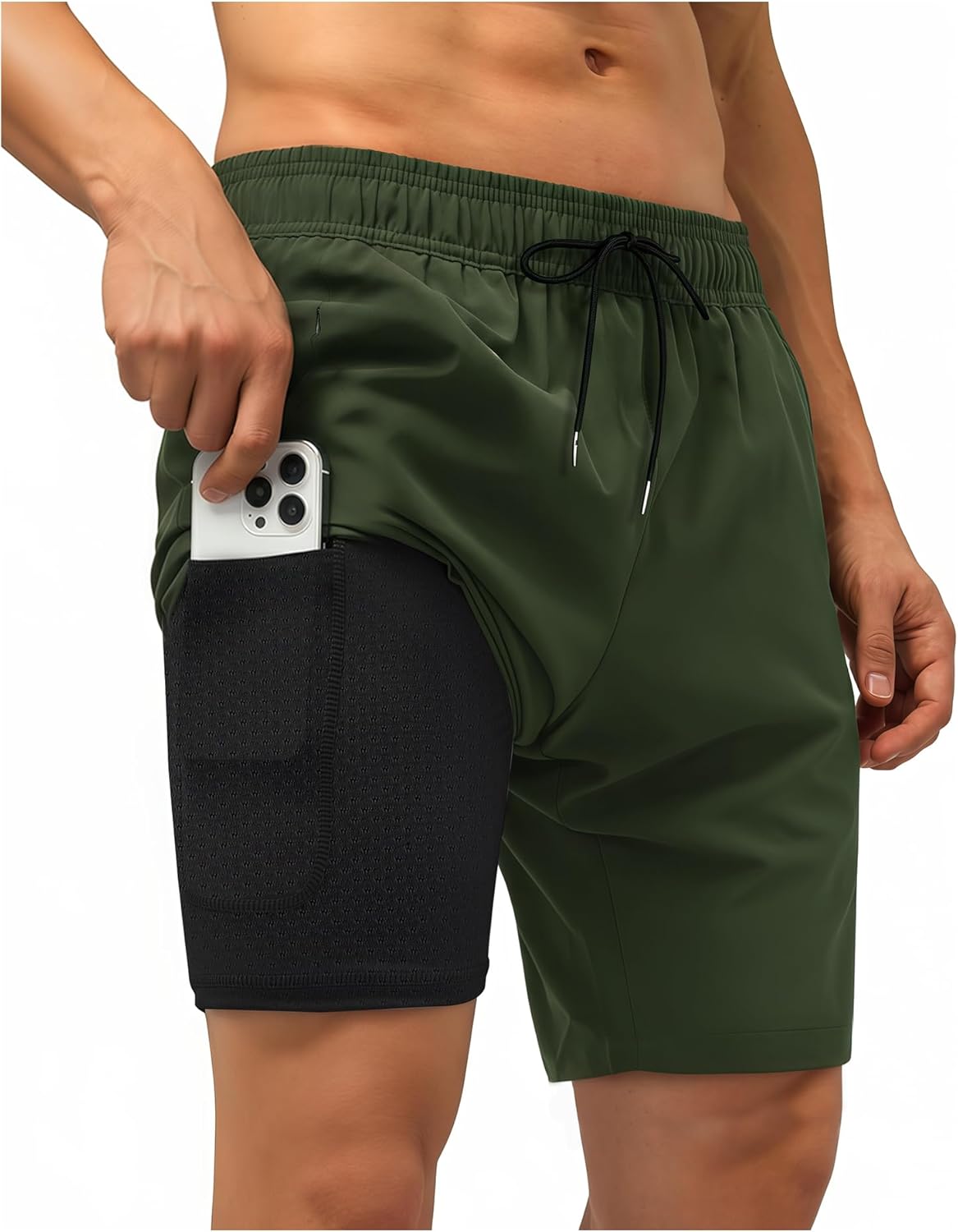Men Swim Trunks with Compression 7 Inches Breathabe Liner Quick Dry Zipper Pockets for Board Beach Gym Running