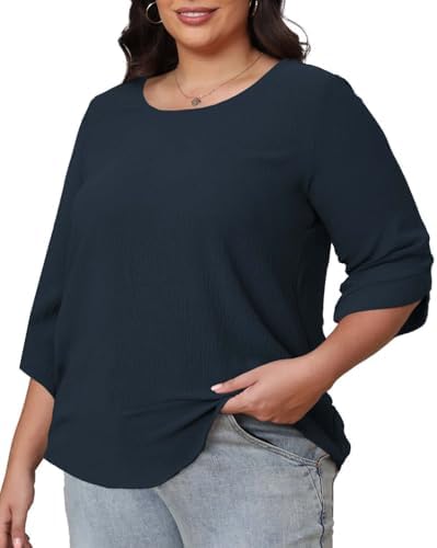 CARRROTMOB Plus Size Women's Summer Chiffon Blouses Bell Short Sleeve T-Shirts Casual Crew Neck Loose Flowy Plus Size Tops
