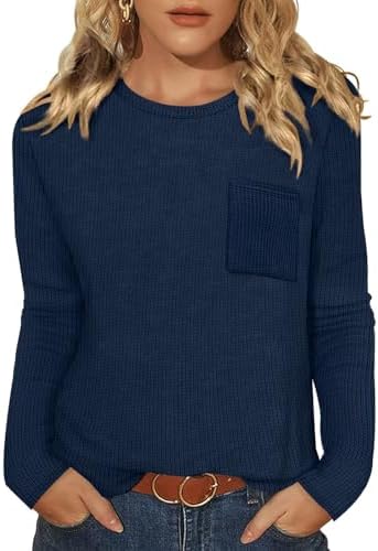WIHOLL Long Sleeve Shirts for Women Waffle Knit Trendy Fall Fashion 2025 Dressy Casual Blouses Teacher Outfits