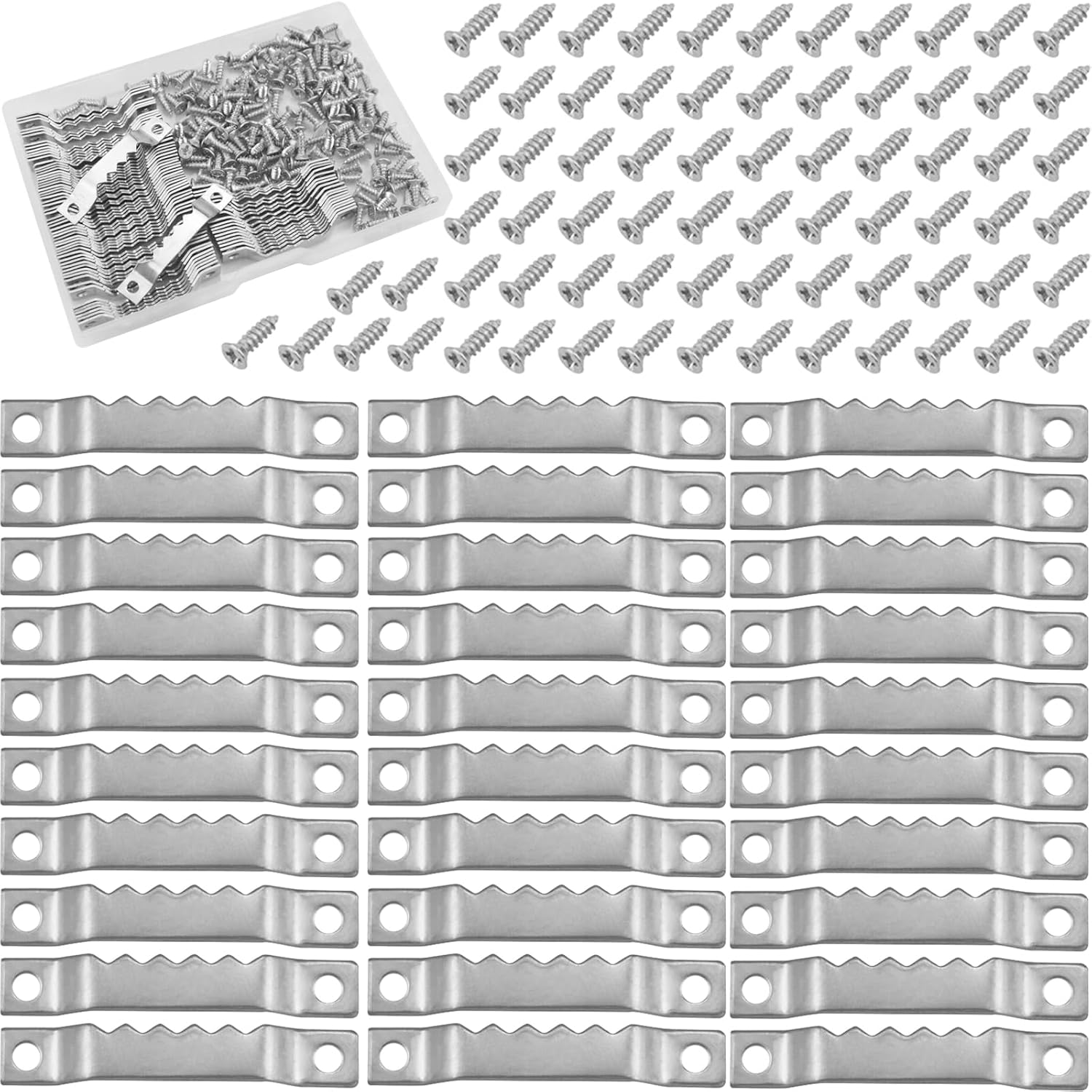 What You Get: Come with 100 pcs black sawtooth hanging hardware and 200 pcs screws in a plastic box. The hangers work with either soft or hard woods.