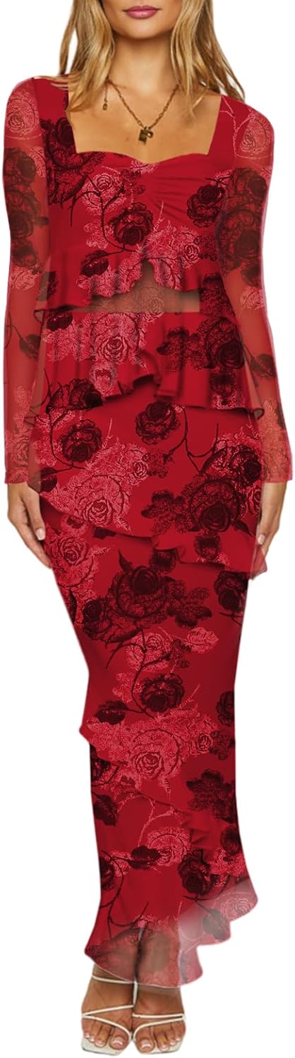 Lrady Women's Two Piece Skirt Sets Beach Formal Wedding Guest Sleeveless Peplum Ruffle Party Maxi Bodycon Dress Outfits