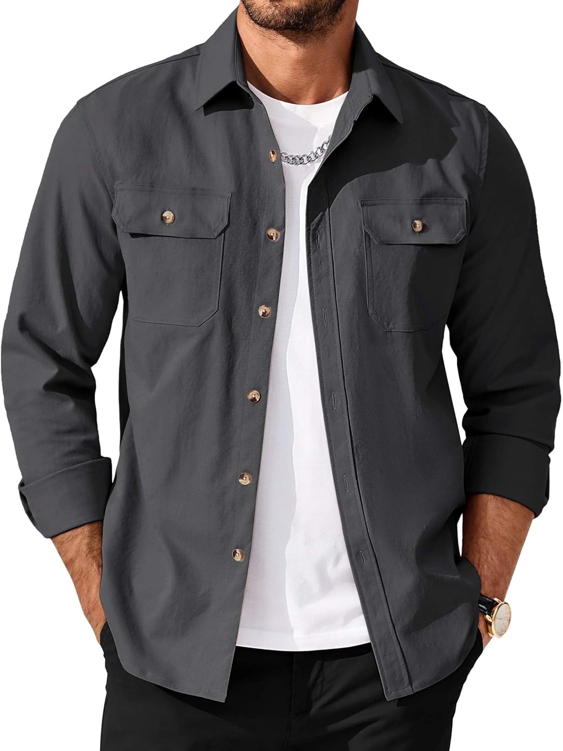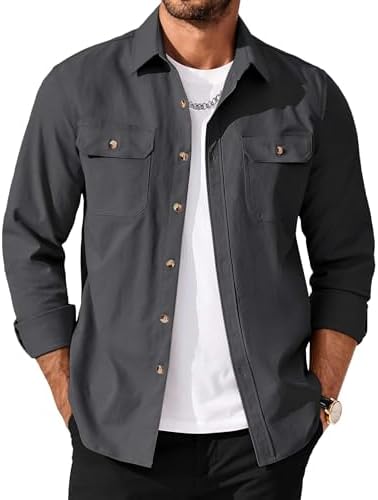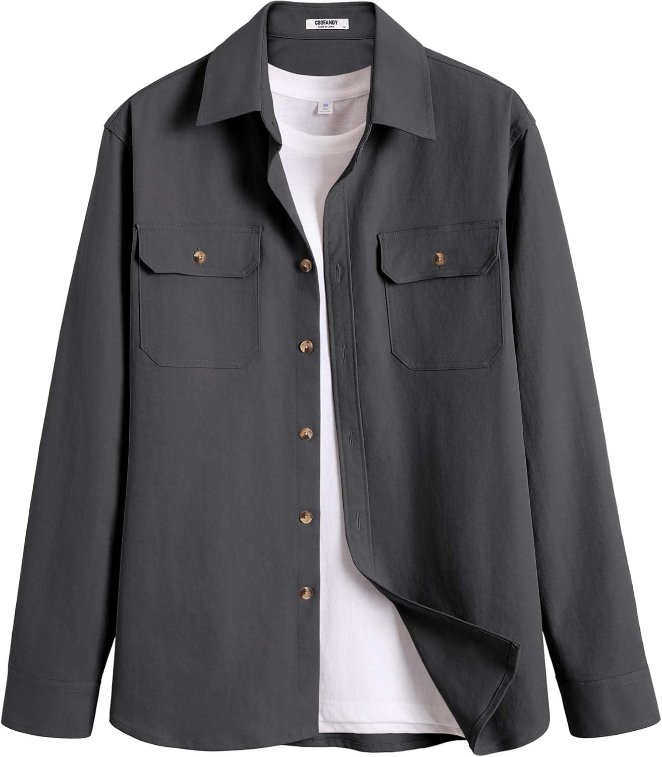 COOFANDY Mens Shirt Jacket Casual Button Up Shirts Long Sleeve Lightweight Shacket with Flap Pockets