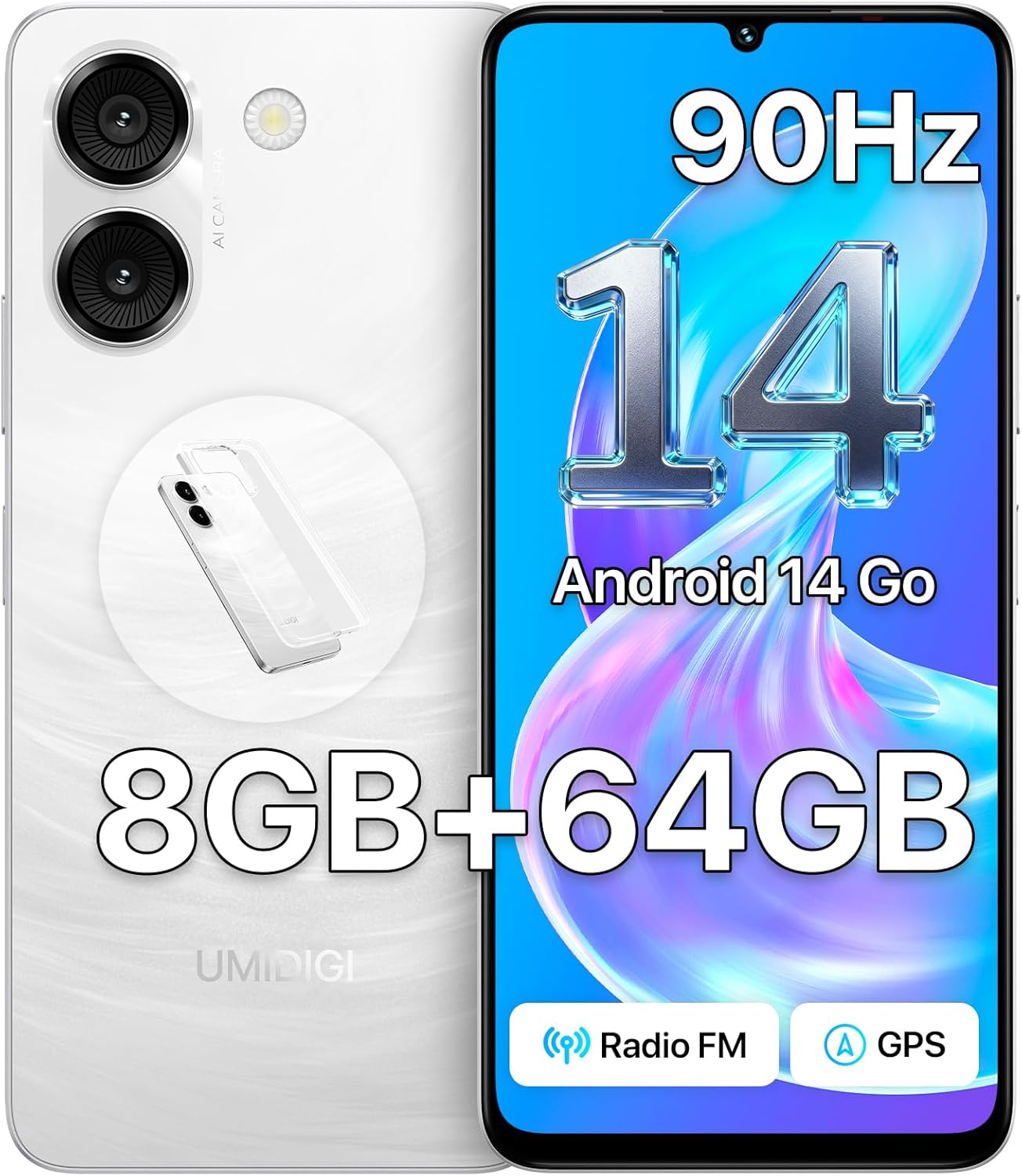 UMIDIGI G9A Unlocked Cell Phones Android 14 2025, 6.75" HD+ 90Hz Display Smartphone,8(4+4) GB+64GB 2TB Octa-Core Processor,5000mAh,Show captions,3.5mm Jack&FM Radio,Face Unlock,Dual SIM,GPS