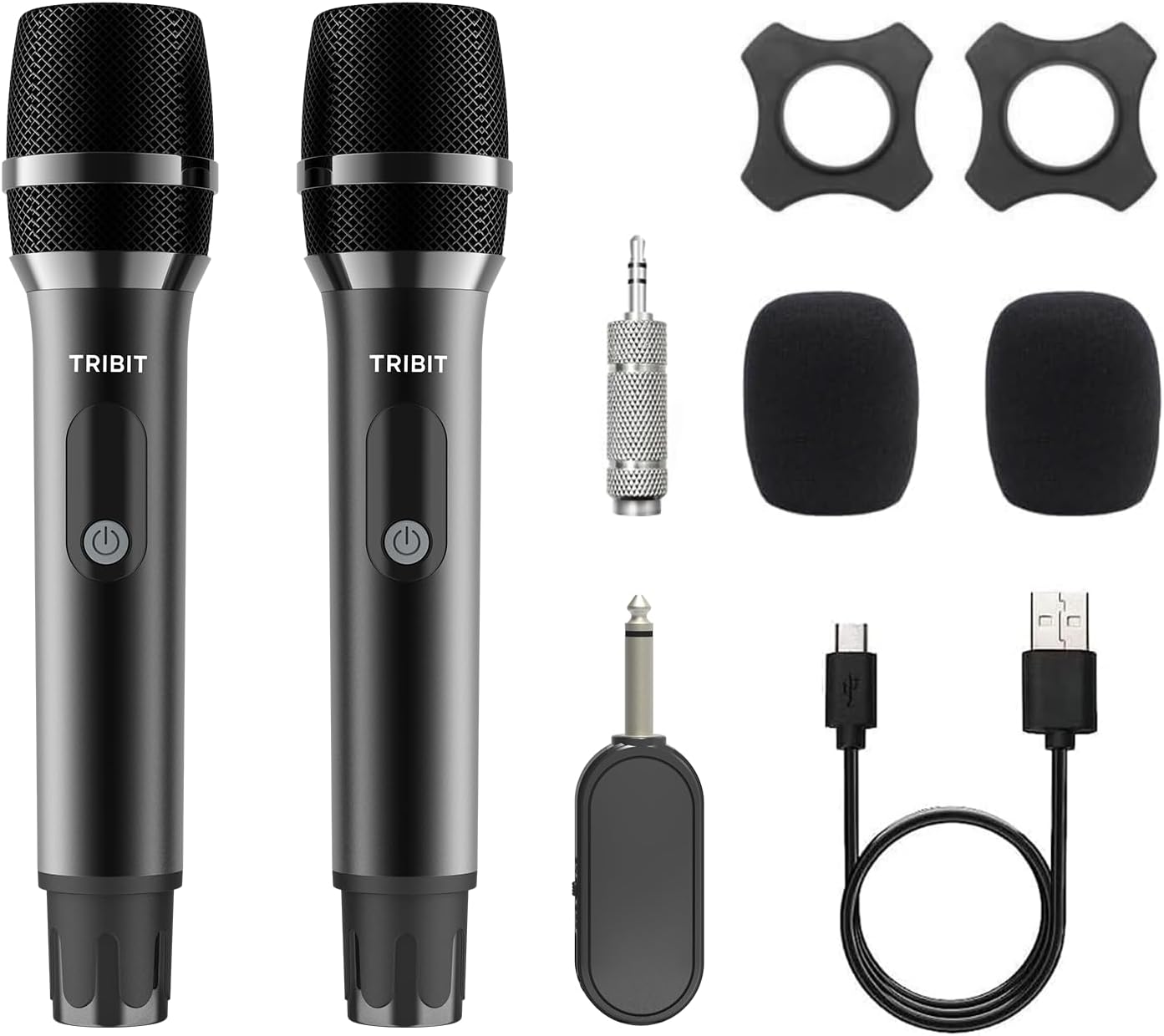 Tribit Wireless Microphone, Dual Handheld Cordless Dynamic Mic System with 2.4GHz Rechargeable Receiver, 40H Battery Life, Plug and Play for Karaoke, Party, Wedding, DJ, Church, Speech, Meeting