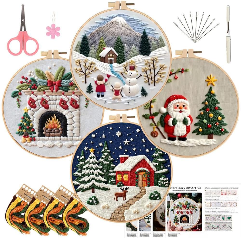 Chronoseek Christmas Embroidery Kit, Stamped Cross Stitch Kits, 4 Set Gothic Embroidery Kit for Beginners, Needlepoint Kit Unisex, 8 Inch, Cross Stitch, Needlepoint, DIY, Craft Kit (Christmas CX03)