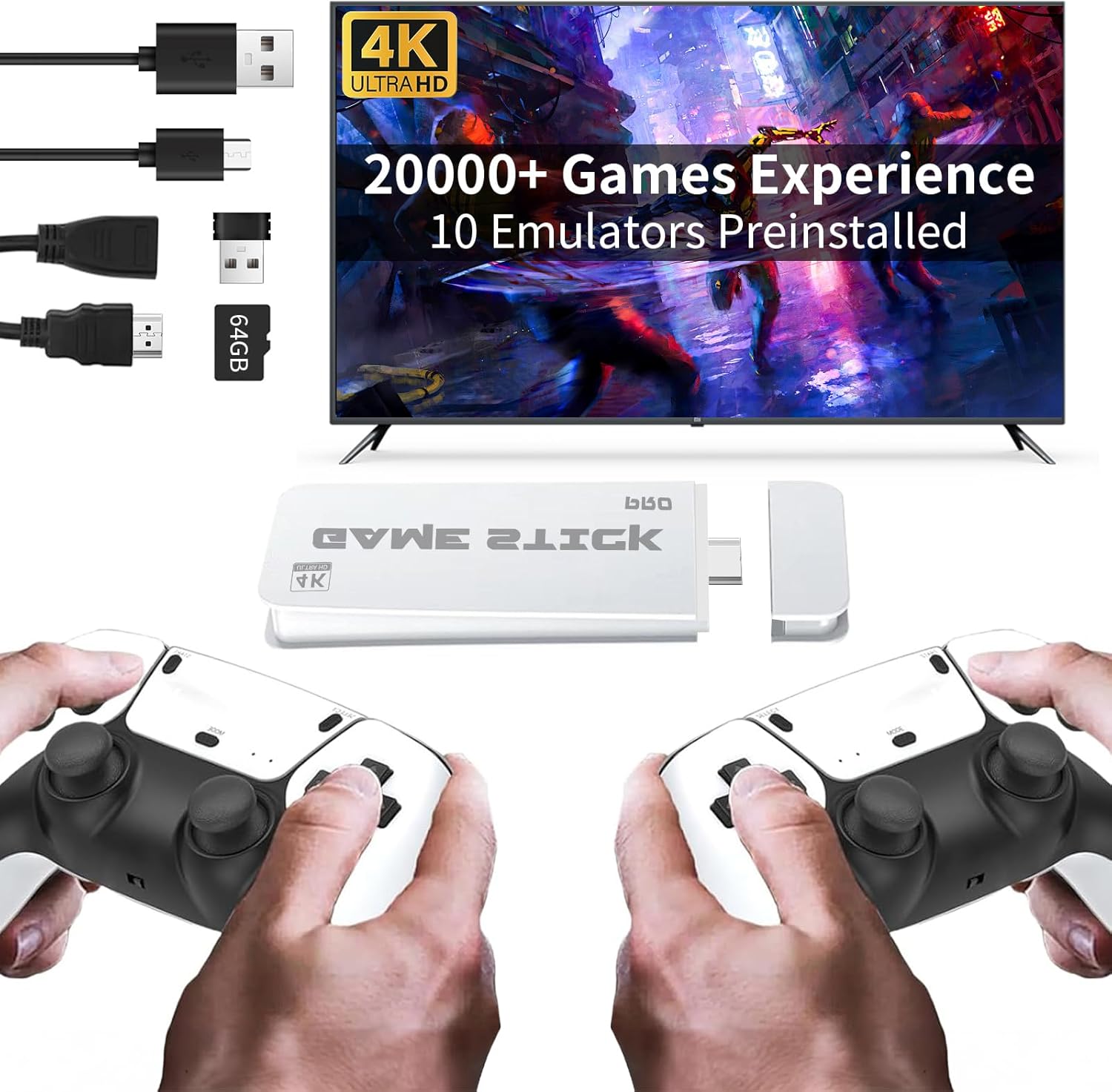 20000+ Classic Gaming Experience: This retro game console has built-in over 20,000 retro games, preinstalled 23 emulators, packed with a 64GB TF card. Via our retro game stick 4k 20,000 games, you don't need to downloads, no Internet, just connect to your TV, enjoy these rich and massive classic games, take you back to old days.