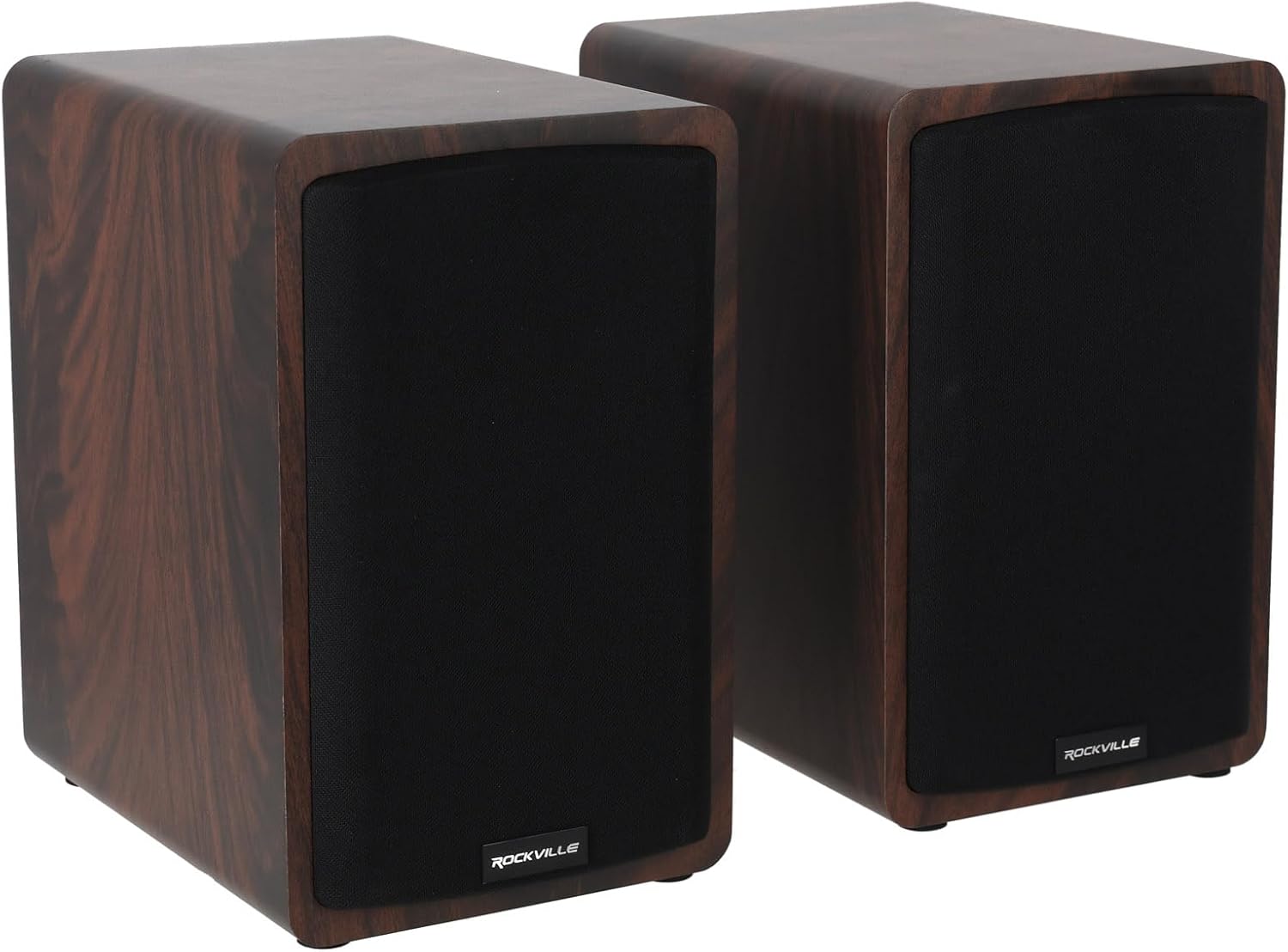 Rockville ELITE-5D Bluetooth Bookshelf Speakers – 800W, 5.25" Drivers, Optical & USB Inputs, Dual Mic Inputs, Dark Wood Finish