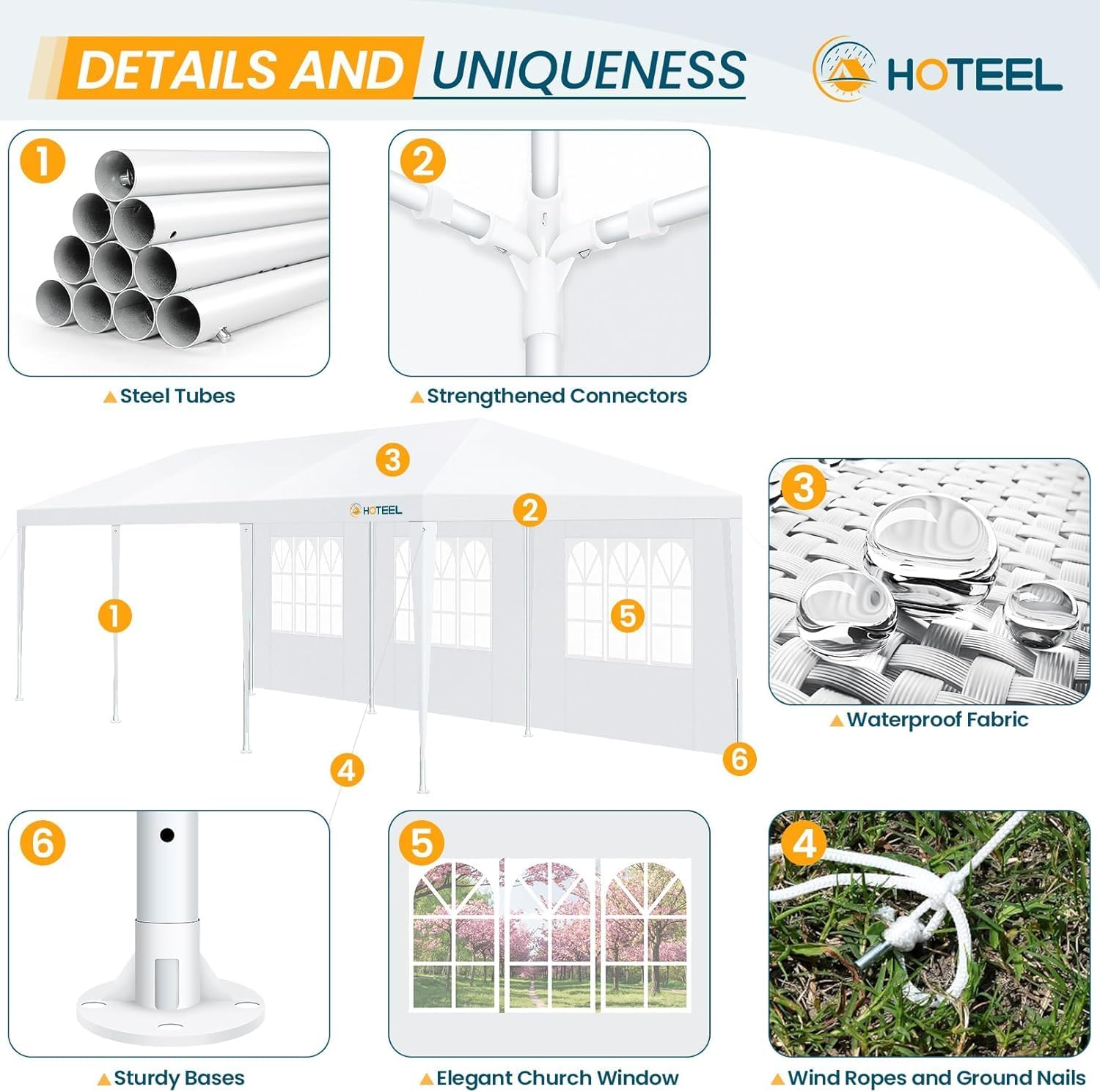 HOTEEL 10x30 Party Tent with 8 Removable Sidewalls for Parties, Weddings, BBQ, Waterproof Outdoor Event Canopy, Patio Camping Gazebo, Carpas para Fiestas, White