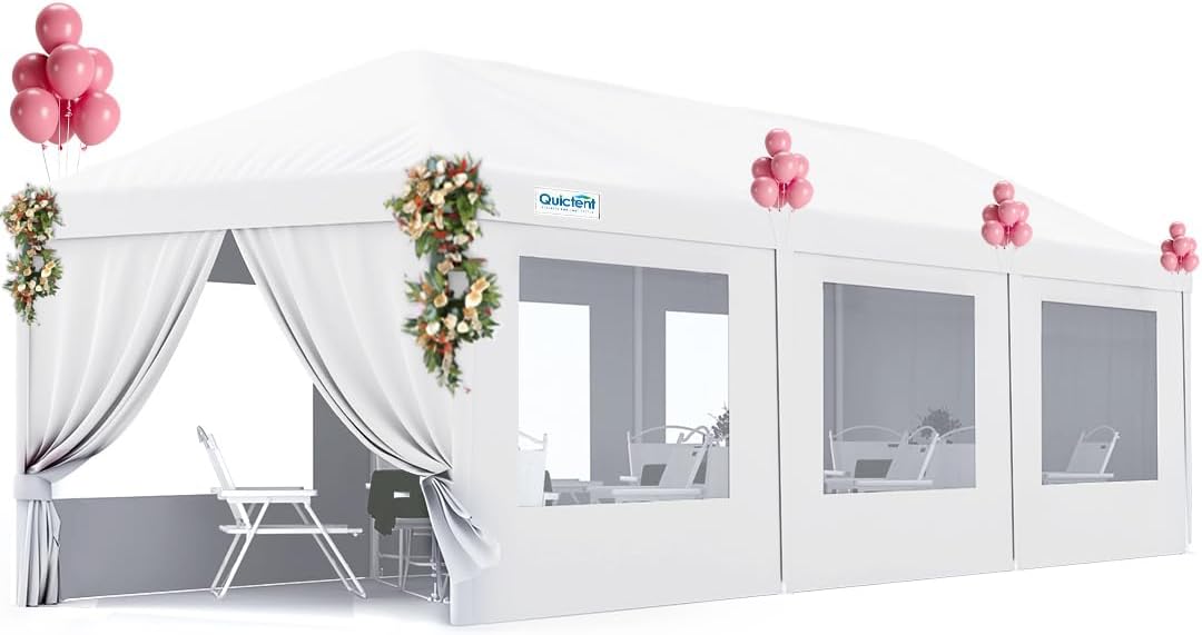 Quictent 10x30 Party Tent Wedding Canopy White Waterproof Gazebo Event Shelters Tents for Parties with Roll-up Cover& Mesh Windows Sidewalls carpas para Fiestas