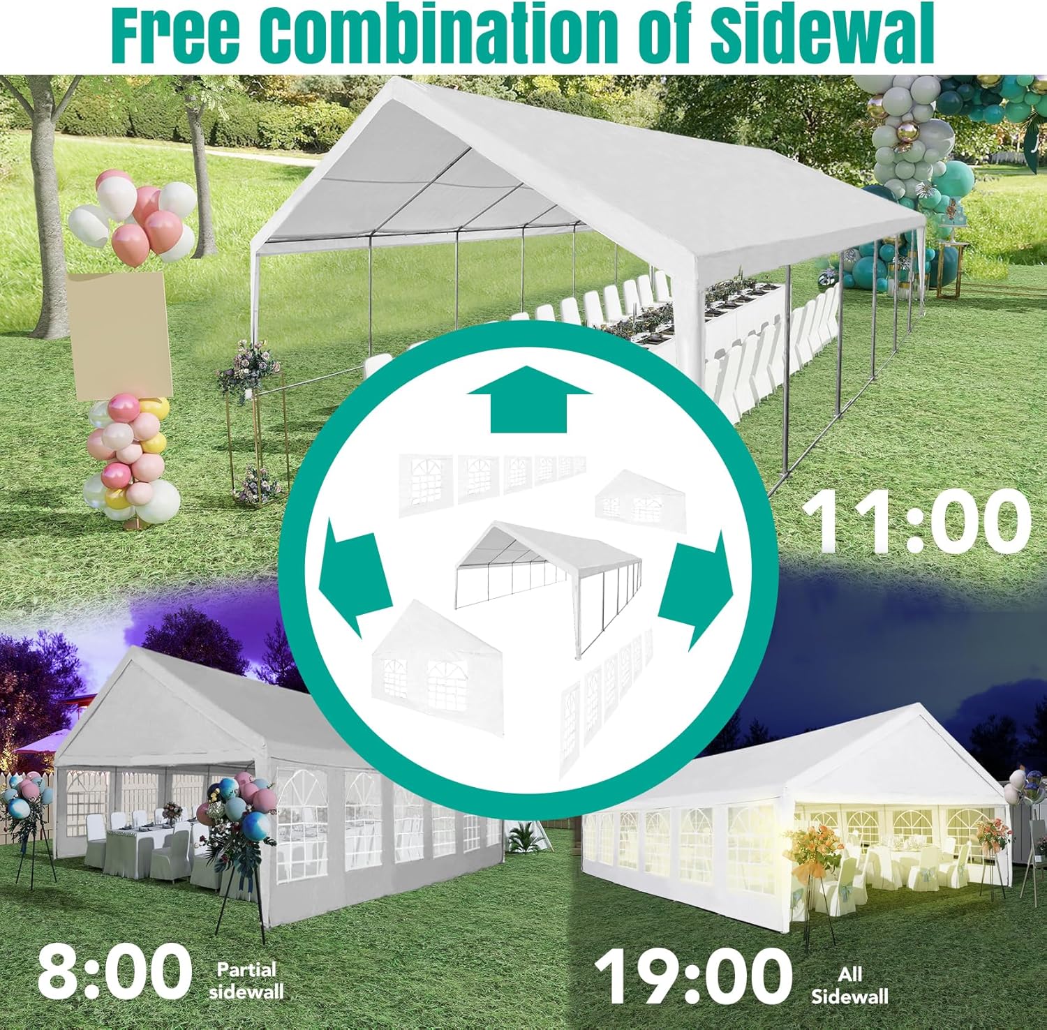 Party Tent 20X40ft Heavy Duty Large Outdoor Commercial Wedding Canopy White Event Shelter Gazebo Carport with Removable Sidewalls & Storage Bag