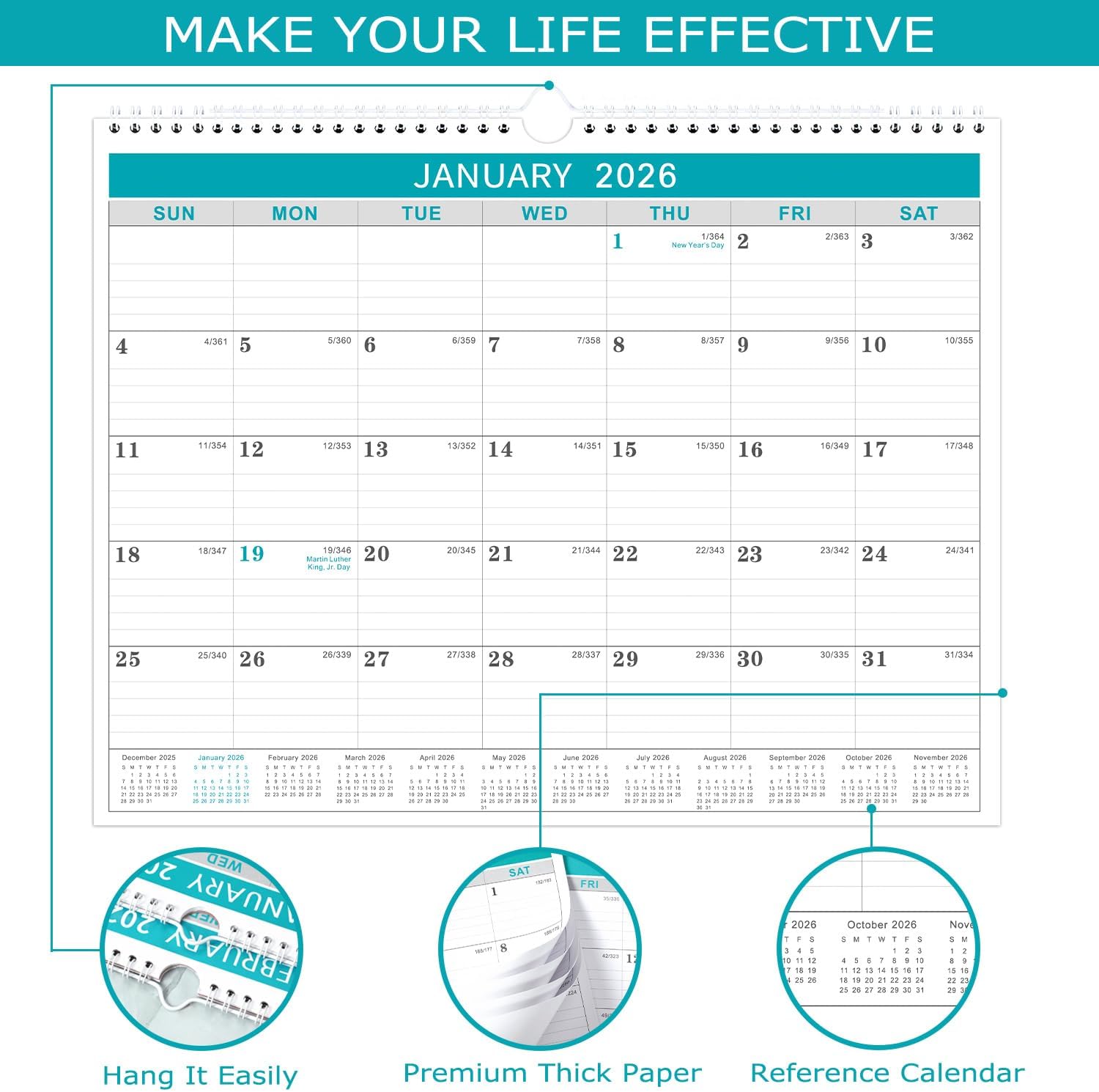 MAKES YOUR LIFE PRODUCTIVE - This 2026 wall calendar can also work as a desk pad. It’s a great tool to make your life efficient. With this monthly wall calendar 2026, you can jot down notes, ideas, meetings, appointments and other important tasks.