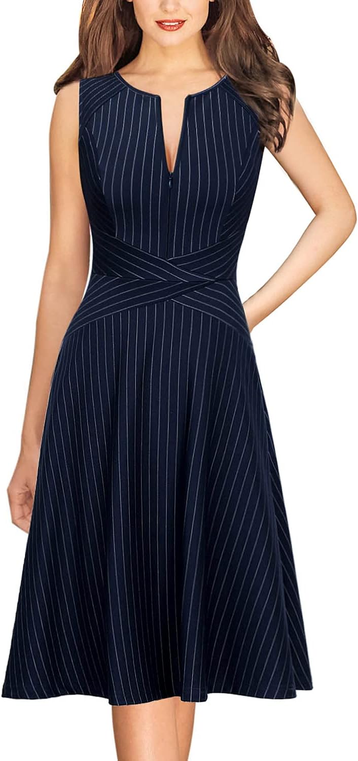 VFSHOW Womens Elegant Front Zipper Slim Work Business Office Party Cocktail Skater A-Line Dress