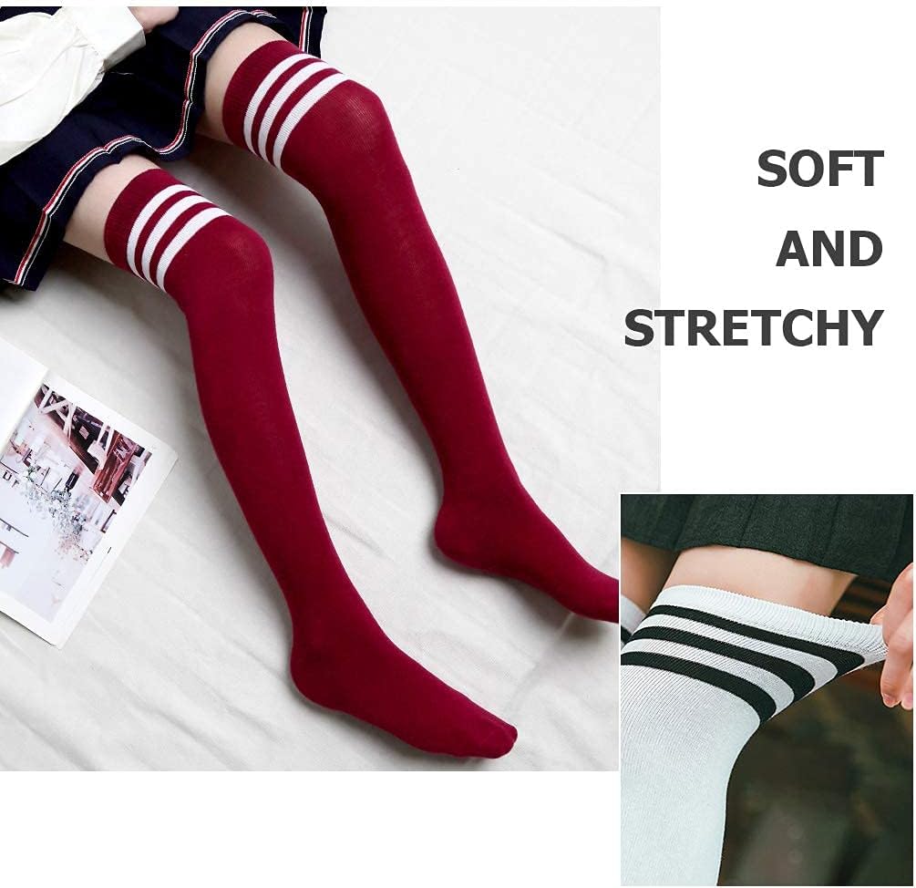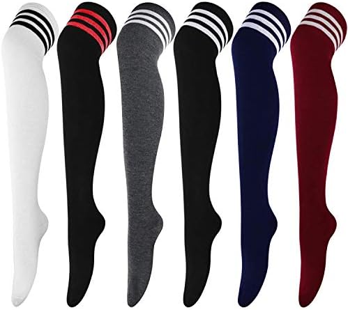 DRESHOW 6 Pairs High Thigh Socks Striped Over Knee Thin Tights Long Stocking Knee High Leg Warmer