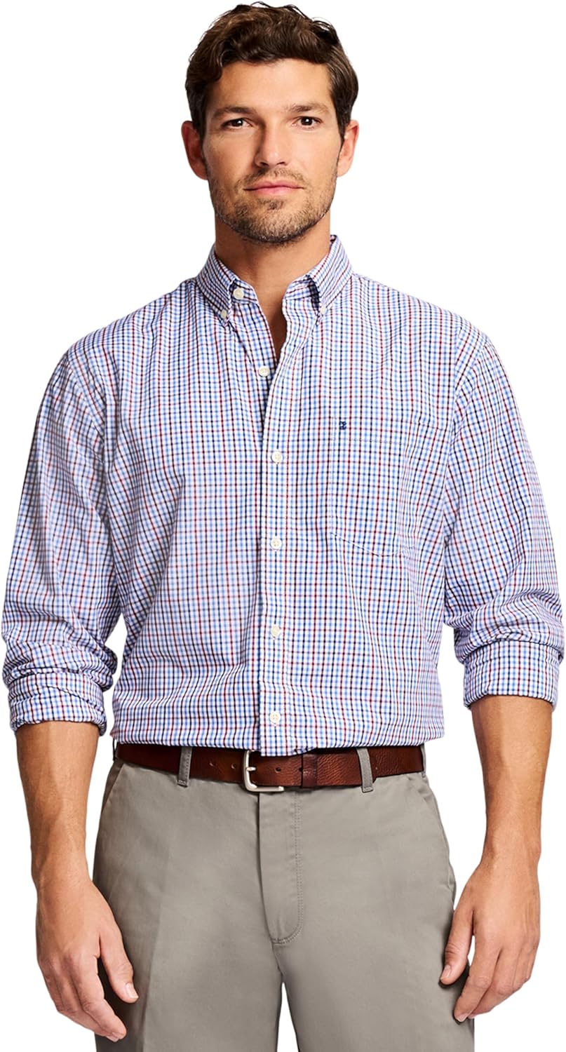 IZOD Men's Performance Comfort Long Sleeve Plaid Button Down