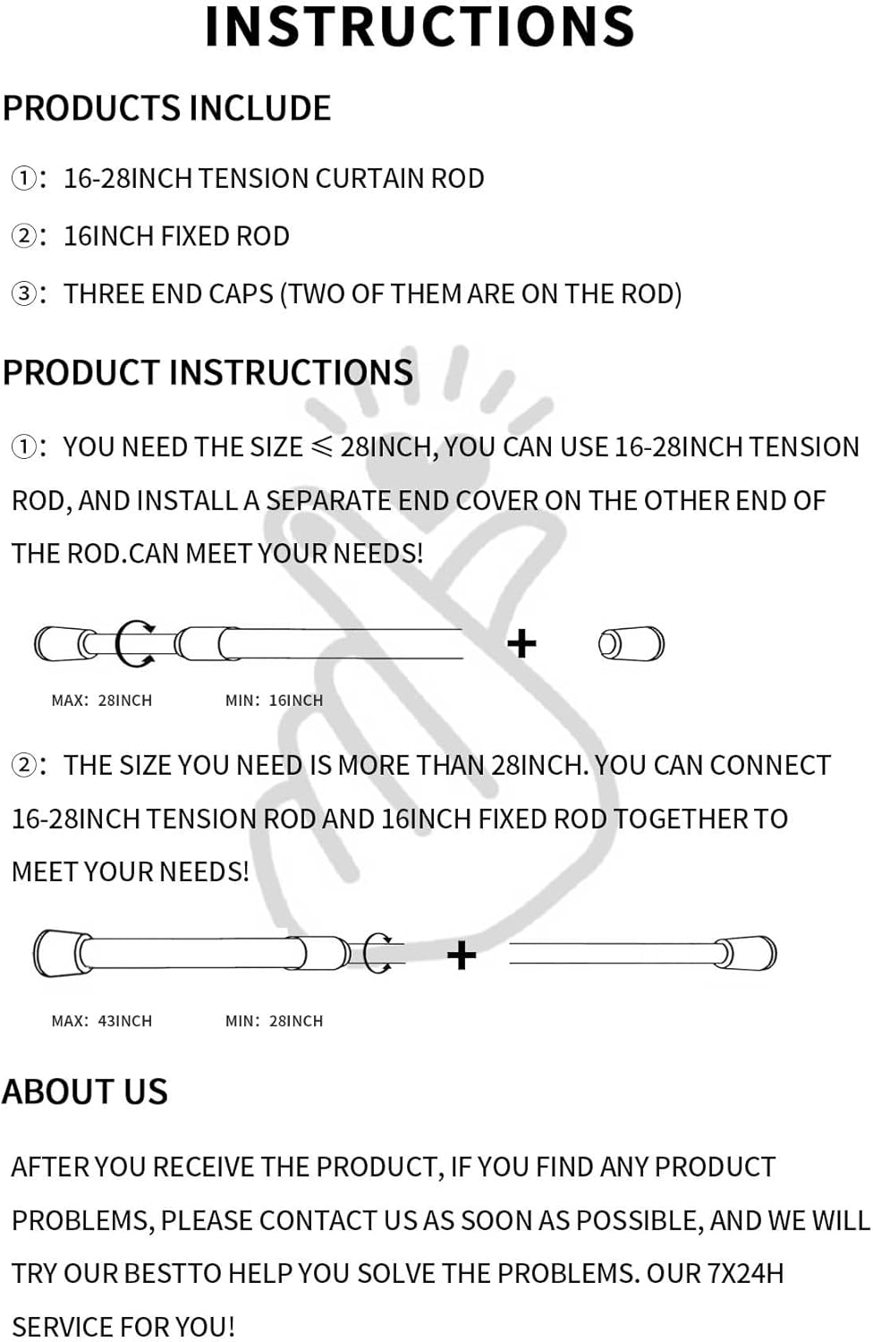 【Firm Non-slip】- Made of Strong and Rough Metal materials, Metal rod with plastic ends, Baked black paint material surface, a strong stretch to extend enough to support the force, bearing is 2 times the ordinary items.you don't have to worry about it slipping or falling