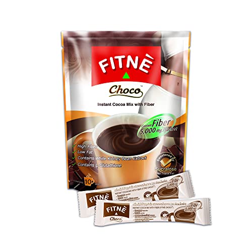 FITNE Instant Choco Mix With Fiber Filling White Kidney Bean Extract Smooth Taste Chocolate Drink No Sugar Sucralose Sweetener, 10 Sachets