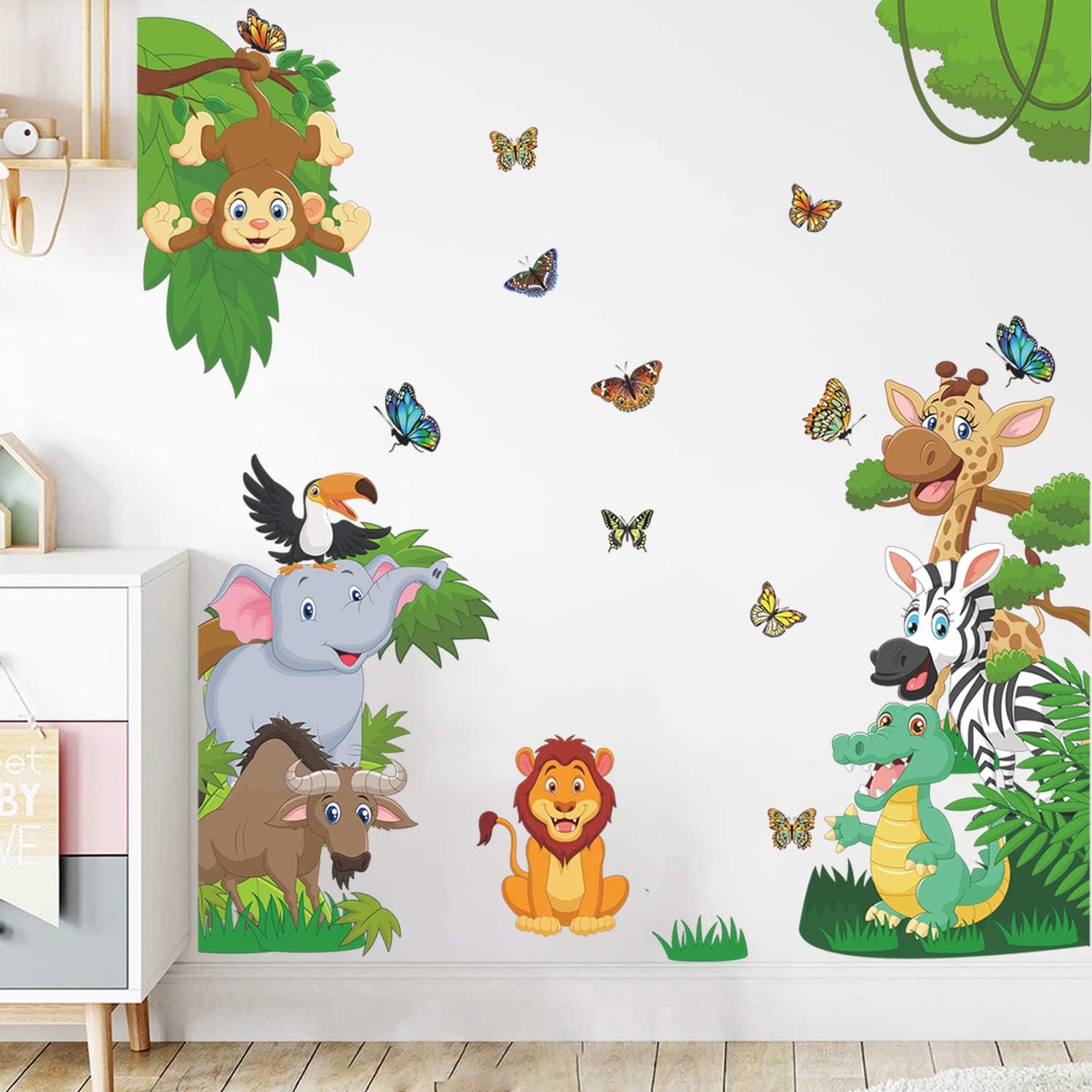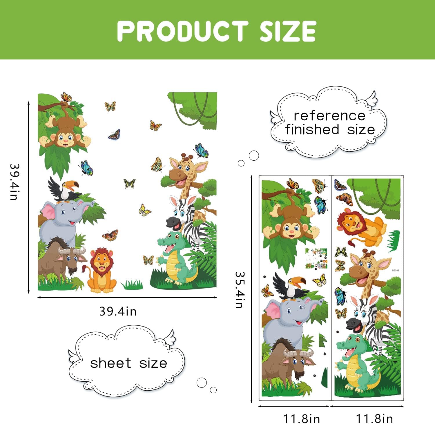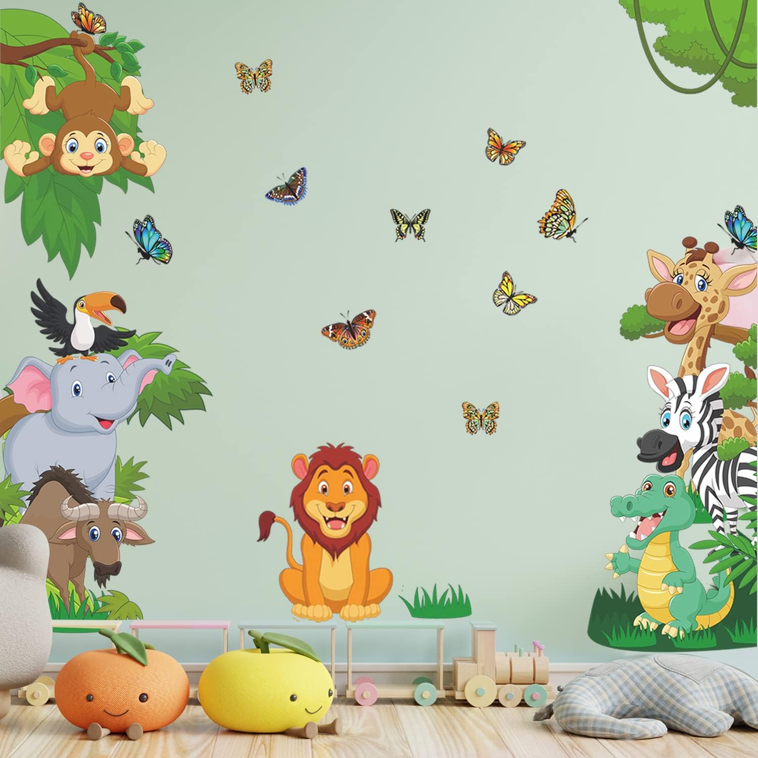 Safety for Children: Jungle animals wall sticker is made of eco-friendly vinyl, inks, and adhesive, containing non-toxic and are odor-free, keeping your kids far from chemicals harm