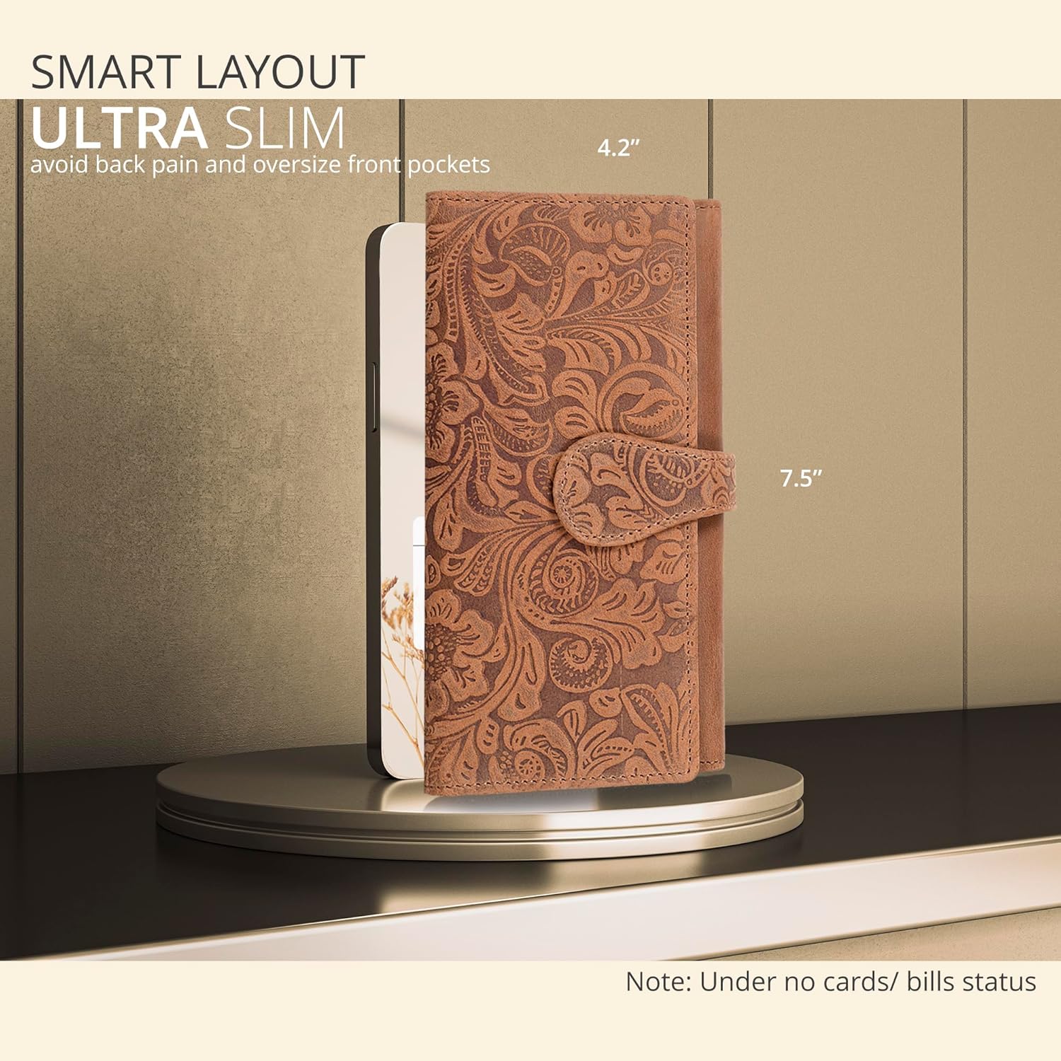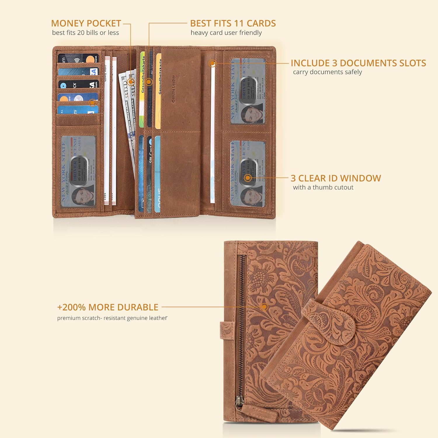 Real Leather Women Wallet Leather with RFID Blocking -Trifold Card Holder Designer Ladies Clutch with ID Window Wallets