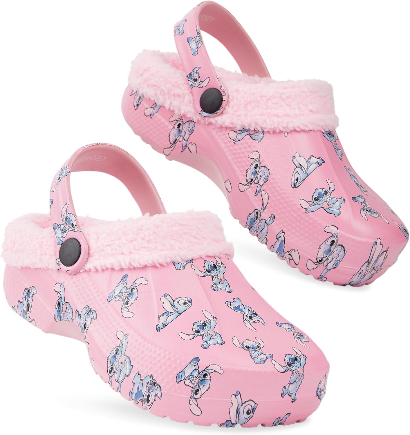 Disney Stitch Clogs for Girls with Fleece Lining, Slip On Shoes, Cozy Indoor, Outdoor Winter Clogs, for Girls