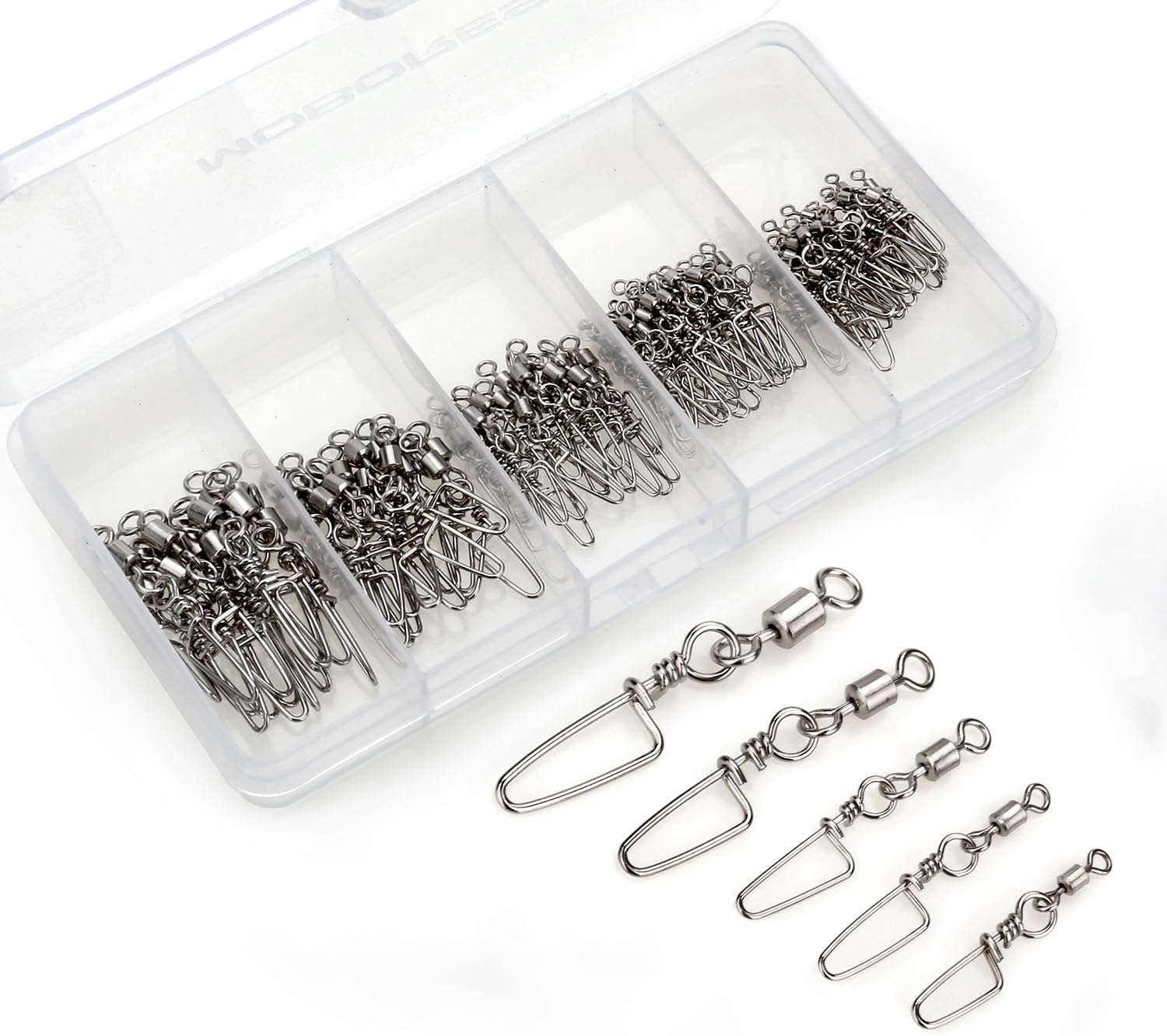110PCS Stainless Steel Barrel Snap Swivel Fishing Accessories, Premium Fishing Gear Equipment with Ball Bearing Swivels Snaps Connector for Quick Connect Fishing Lures