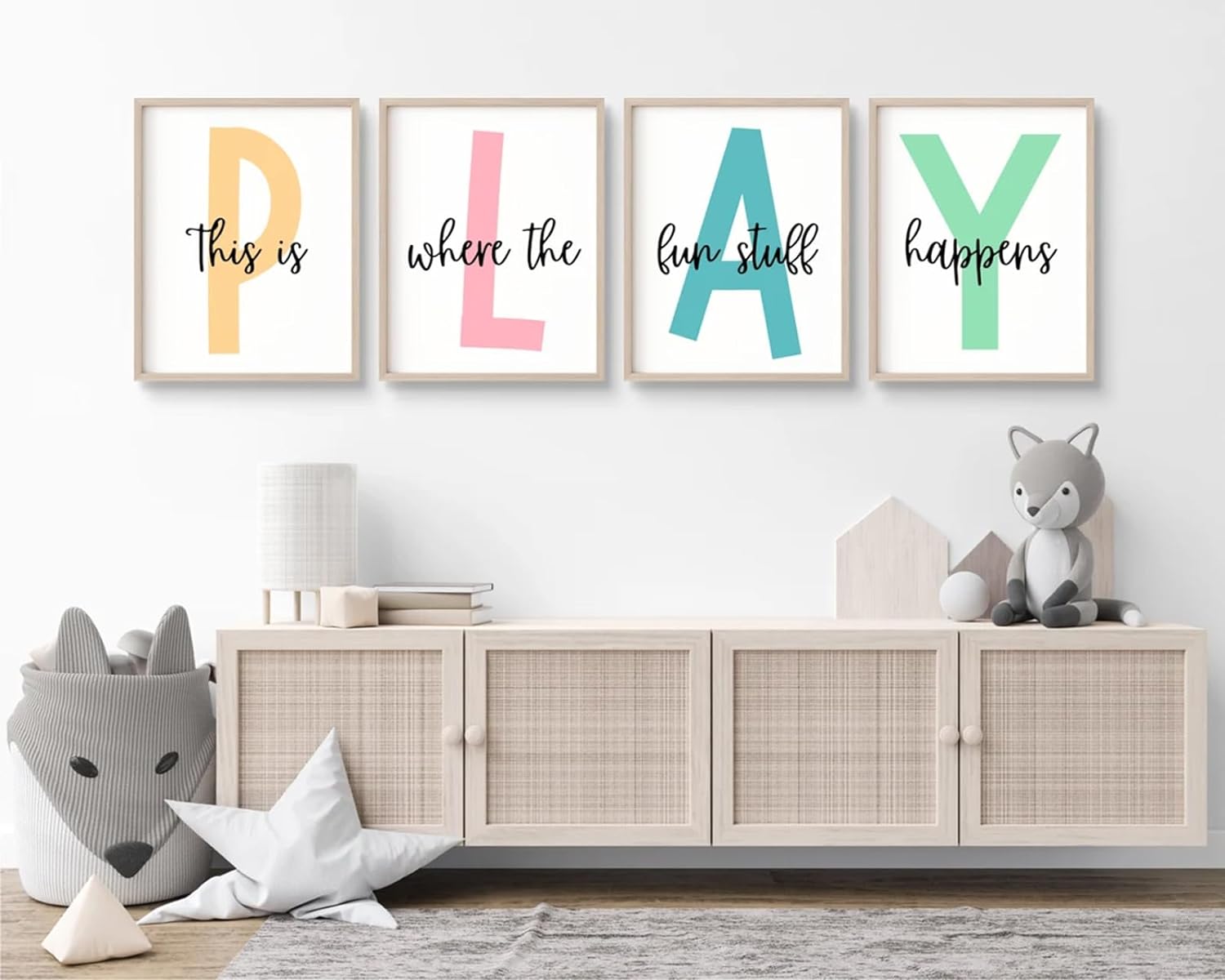 Kids Playroom Wall Art Playroom Wall Decor Kids Play Canvas Wall Art Play Sign Pictures Toddler Playroom Art Prints Nursery Children Artwork for Room Bedroom Set of 4 8x10 Inch Unframed