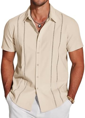 COOFANDY Men's Cuban Guayabera Shirt Short Sleeve Button Down Shirts Casual Summer Beach Linen Shirts