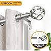 Antique Silver Curtain Rod 32 to 58 Inch (2.6-4.8 ft), USFOOK 7/8 Curtain Rods for Windows 20 to 54 Inch, Telescoping Splicing Drapery Rods with Twisted Cage Finials