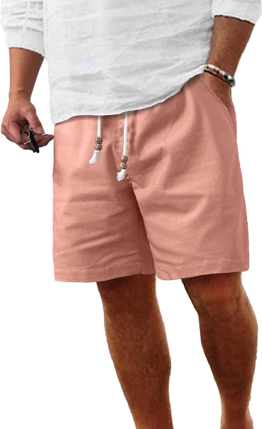 Comdecevis Men's Linen Shorts Casual Elastic Waist Drawstring Summer Beach Vacation Yoga Golf Shorts with Pockets