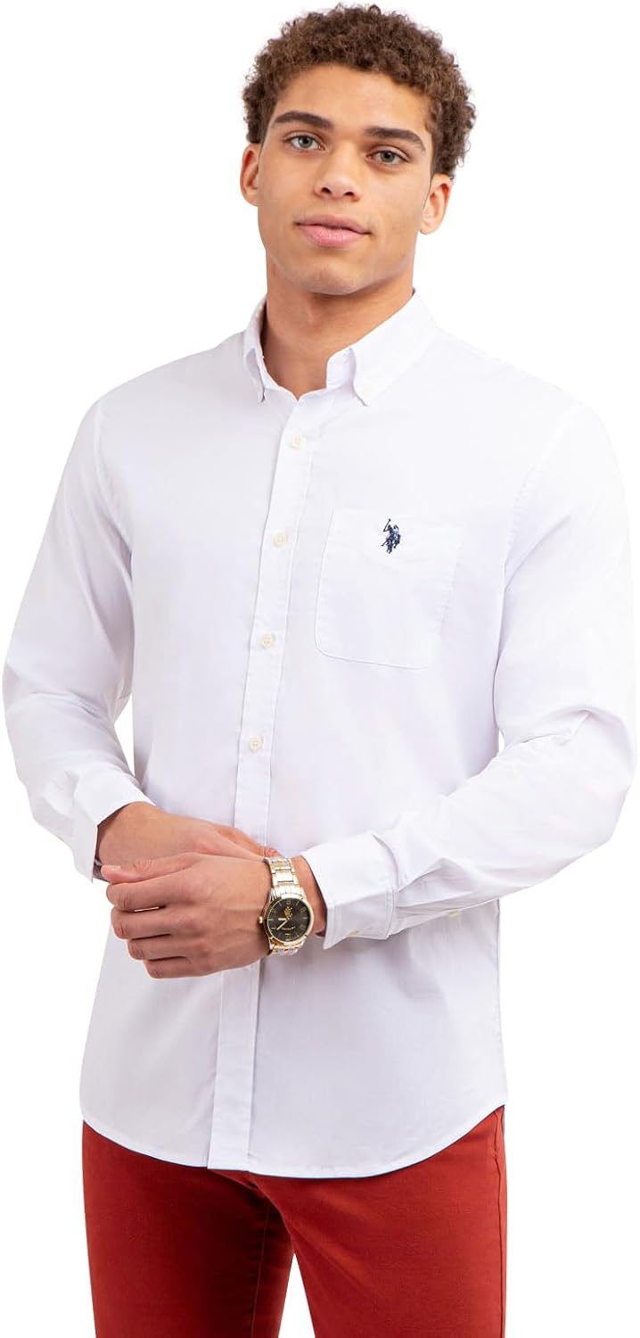 U.S. Polo Assn. Men's Long Sleeve Classic Fit 1 Pocket Solid Stretch Poplin Woven Shirt