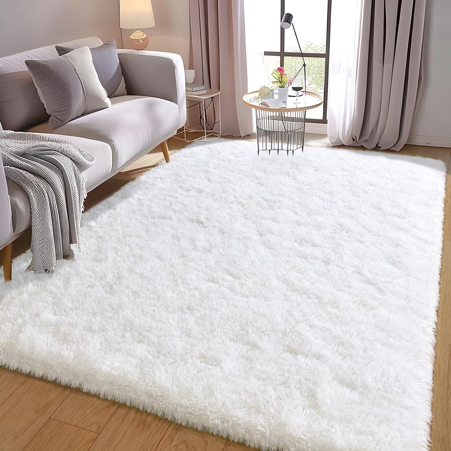 White Shag Rugs for Bedroom, 4x6 Soft Fuzzy Rugs for Living Room, Fluffy Shaggy Plush Carpet Girls Kids Room Dorm Upgrade Non-Slip