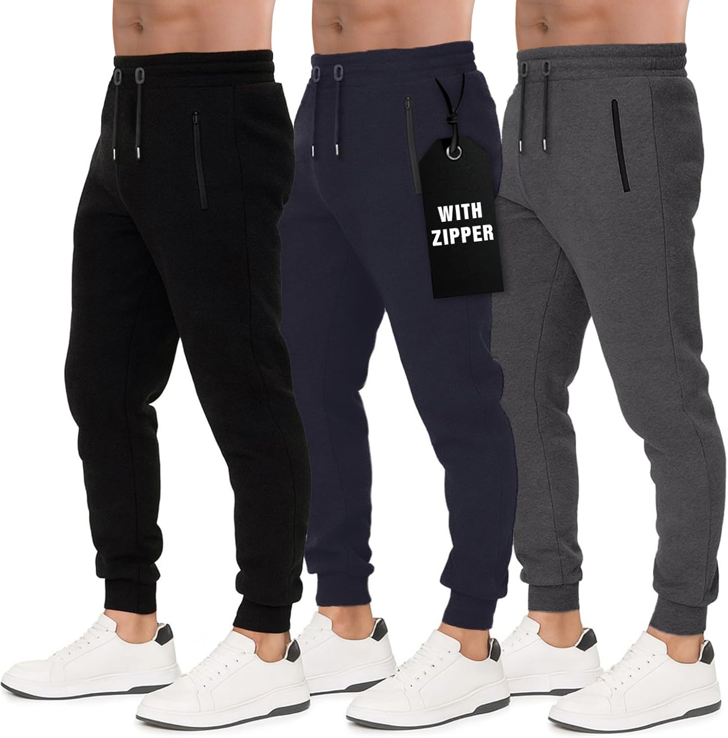 Sweatpants for Men - Active Fleece Athlete Joggers - 3 Pack