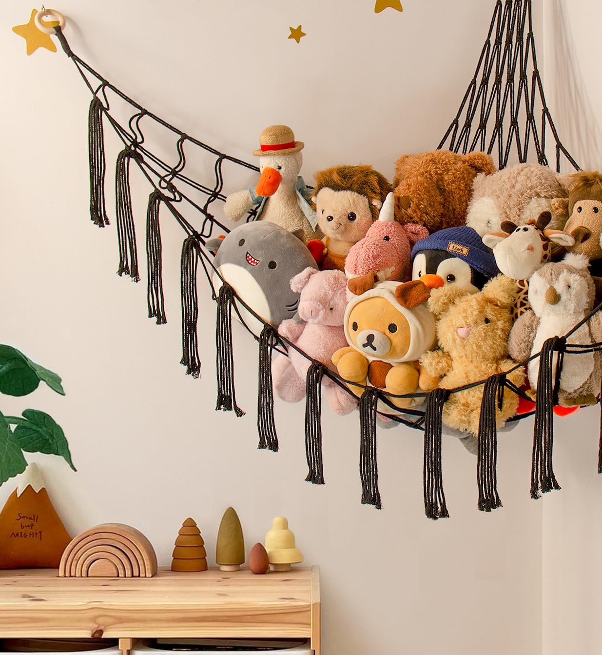 Practical yet Pretty Cute - Unlike the plain toy net, this handmade toy hammock net for stuffed animals not only keeps the plushies organized well, but also looks super cute as a beautiful room decor piece with a bohemian vibe when hung up.