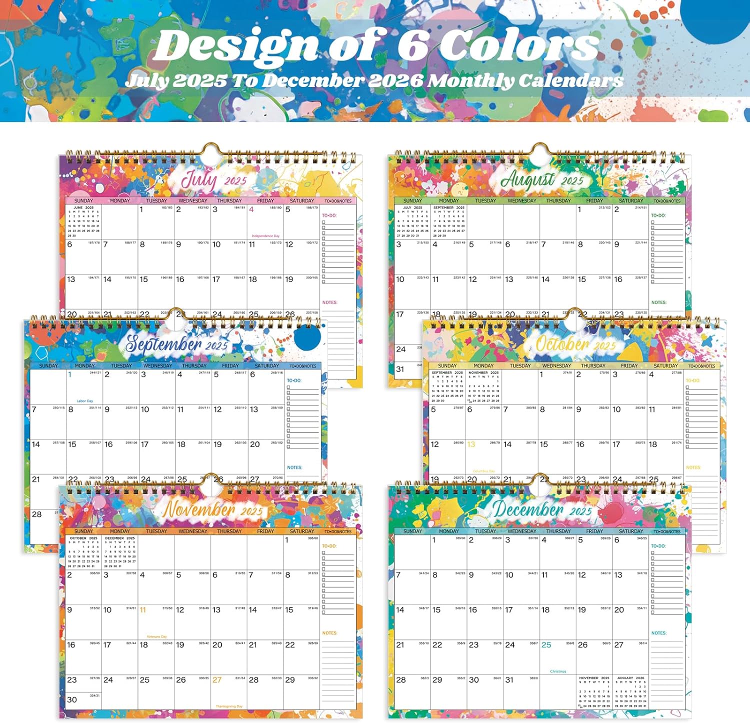 Calendar 2025-2026, 18 Months Wall Calendar July 2025 to Dec 2026 Calendar with Julian Dates, 11" X 8.5" (Colorful)