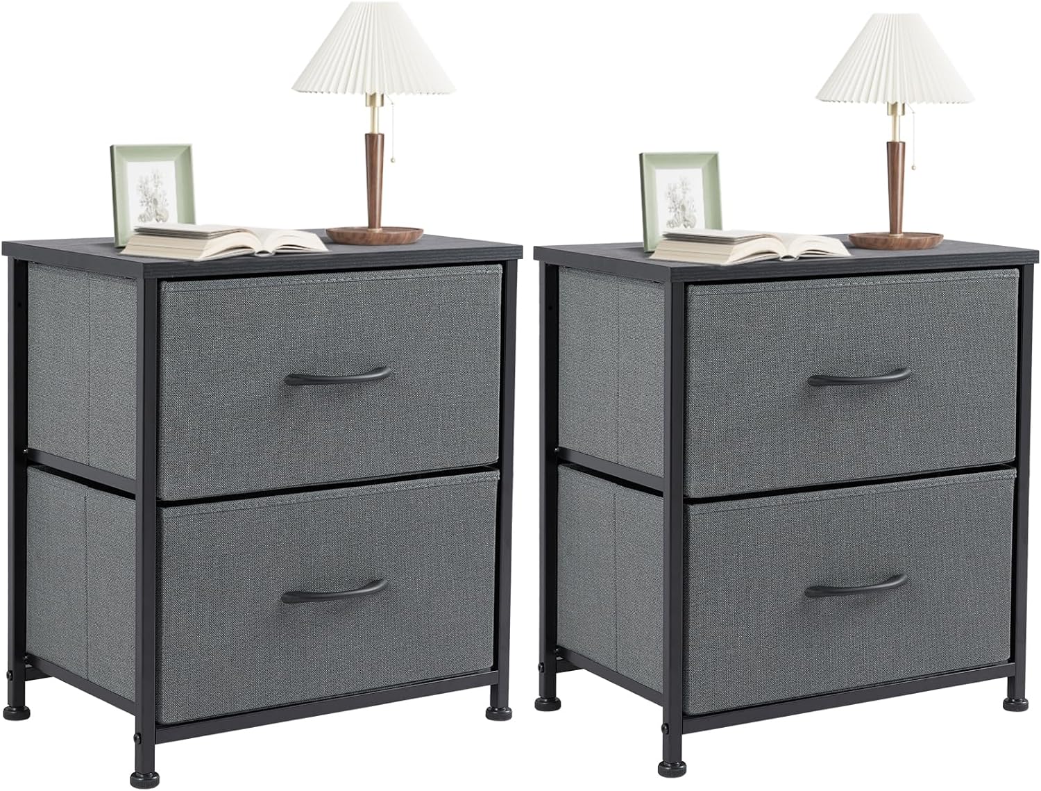 Sweetcrispy Nightstand Set of 2 with 2 Storage Drawers, 20" Height Small Bed Side Furniture End Table, Wooden Top Fabric Cabinet Kids Mini Dresser for Bedroom, Closet, Entryway, College Dorm