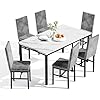 Great Durable: Dining table set for 6 is made of MDF material with marble texture. This table's durable materials and strong structure ensure it can withstand heavy use