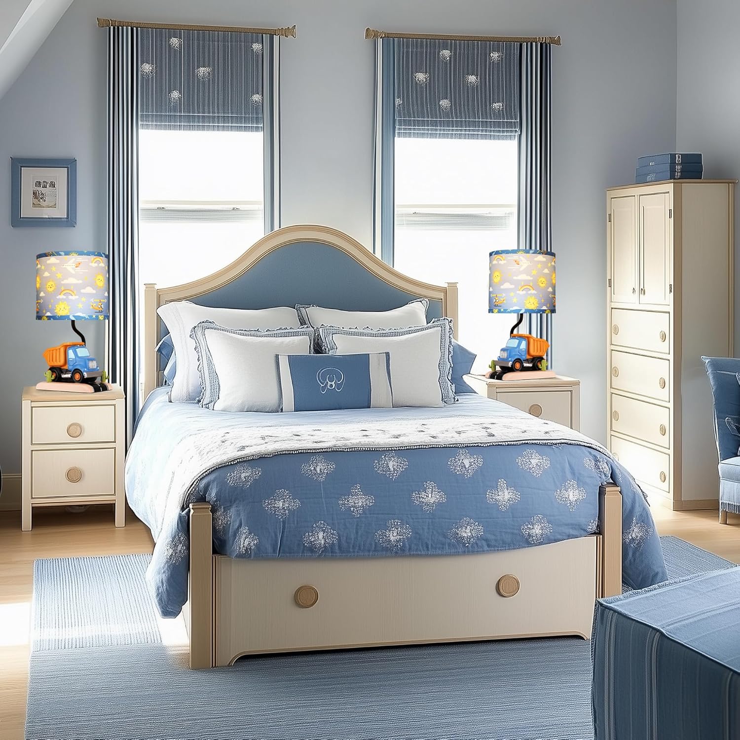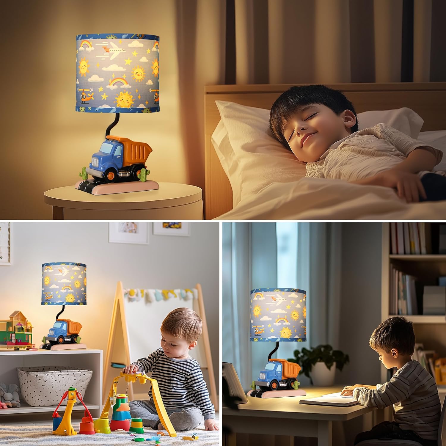 Car Bedside Table Lamp for Kid, Truck Nursery Lamp for Boy Girl Bedroom Nightstand Study Room,Cute Desk Lamp with Blue Lampshade for Toddler Playing Room Classroom Decor,1 LED Bulb Included