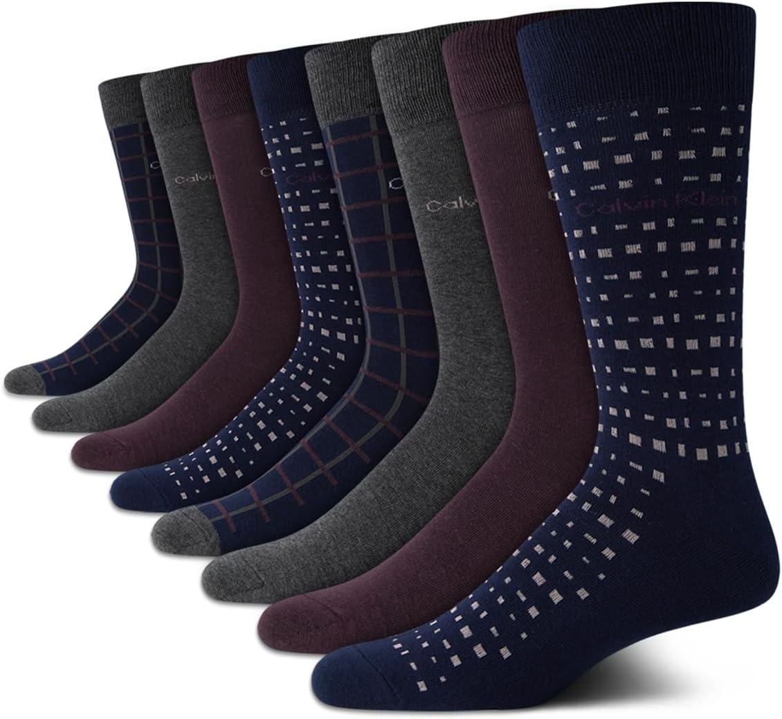 Calvin Klein Men's Dress Socks – 8 Pack Lightweight Cotton Blend Solid Crew Socks (Size 7-12)