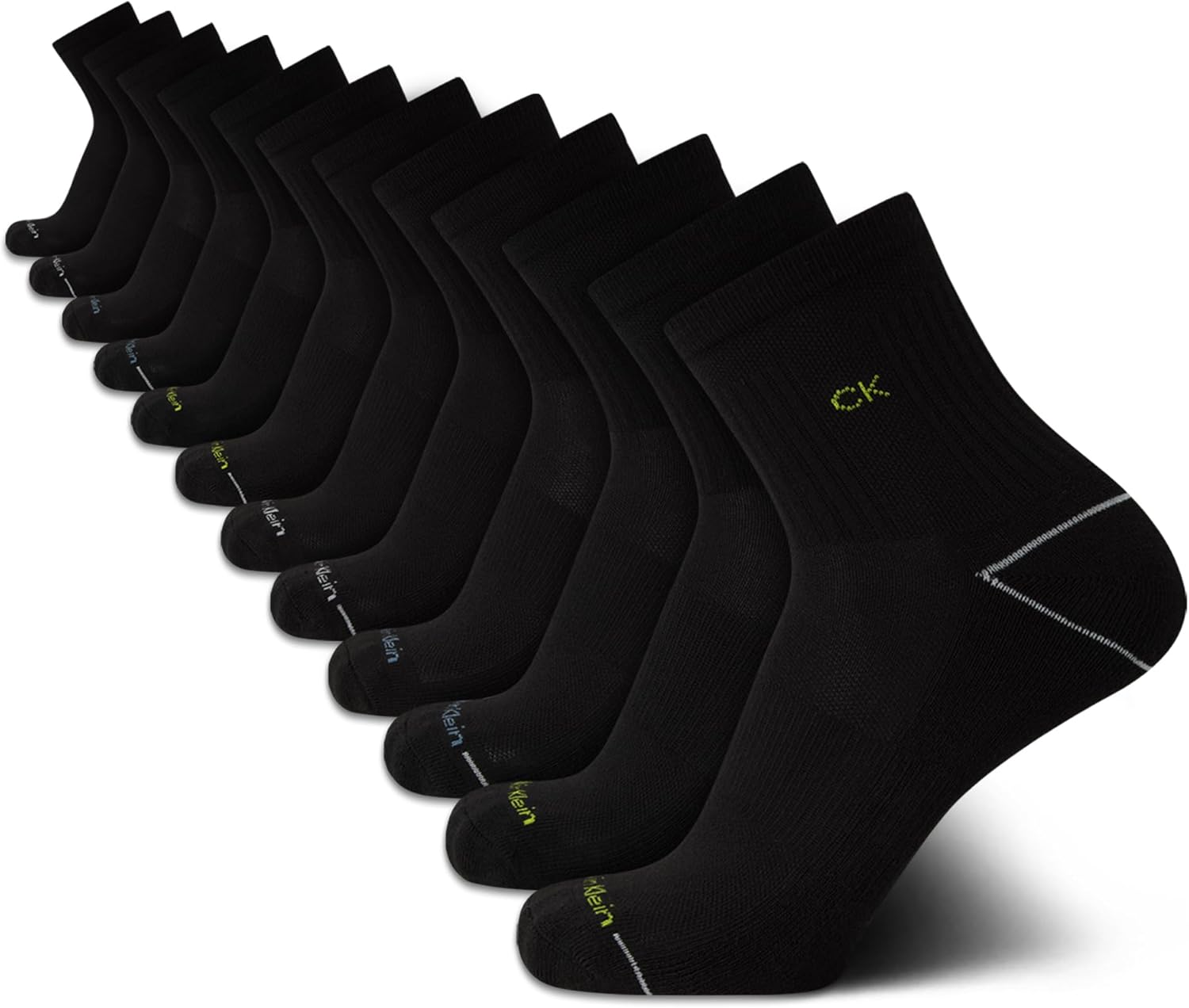 Calvin Klein Mens Quarter Socks - 12 Pack Soft Cushioned Breathable High Quarter Athletic Socks for Men with Arch Support