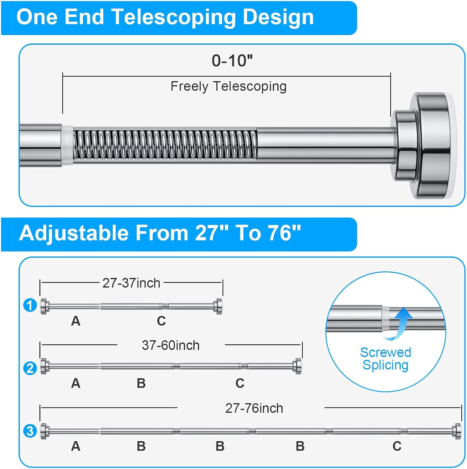 【Multifunctional】-This shower curtain rods can be used in many areas in your house, such as bathrooms, kitchens, bedrooms, and balconies. You can use it with a shower curtain rod at the door for privacy or with curtains at the bedroom window for shading