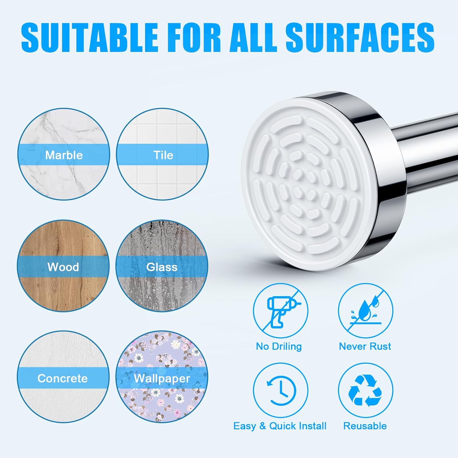 【Superior Material】-Made from premium stainless steel, non-slip, no drilling, no Rust, never collapse, easy to clean, no need to spray before use