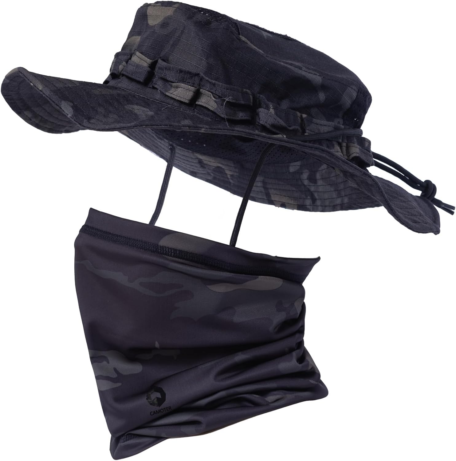 The new style military hat and face mask provided by CAMOTER can better protect the head and neck. Compared to most, this camouflage hat has a breathable mesh, is lighter and more fashionable, has an adjustable drawstring, the brim can be manually shaped, and the top has pockets for small cards, etc