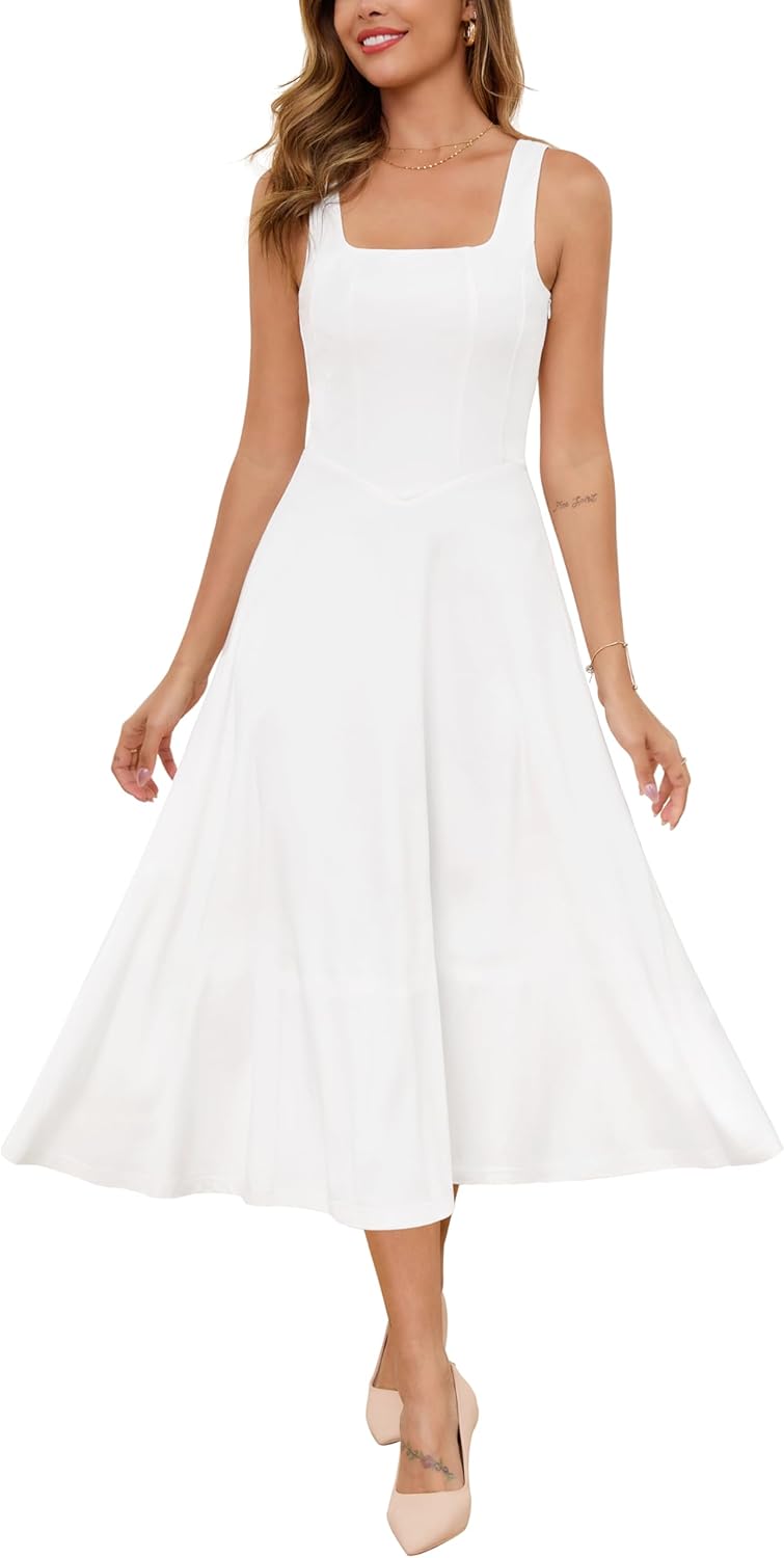Zattcas Womens 2025 Spring Summer Square Neck Sleeveless Flowy Swing Midi Dress Wedding Guest Prom Cocktail Party Dress