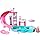 Send Barbie doll (sold separately) down the slide and set her up to chill on the chaise floatie, then pull out the swiveling table to grab a snack!